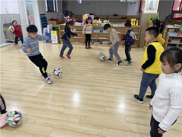 为了增强幼儿对体育活动的兴趣,2020年11月27日,大西门幼儿园教育集团森林城分园大六班教师结合幼儿园足球特色开展了“小足球,大快乐”的体育活动。