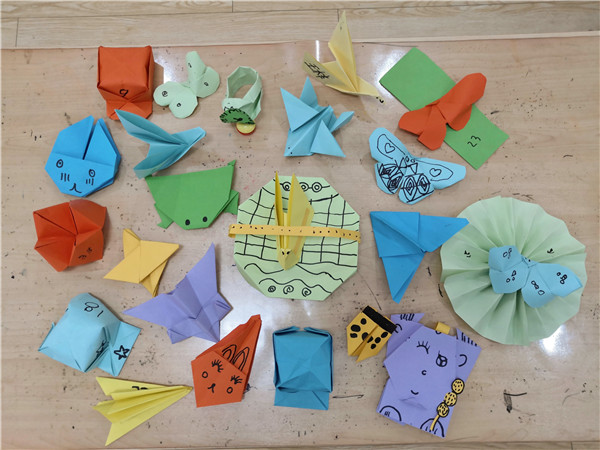 比赛结束了,桌子上堆满了孩子们的作品,在长期的积累下孩子们大都能折出六、七种作品,让我们一起来欣赏下吧。