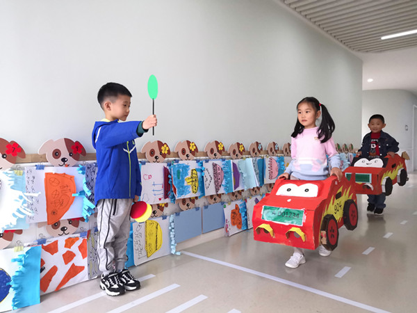 老师根据小朋友的年龄特点,精心制作PPT课件,结合交通标志,深入浅出地为小朋友们讲解如何安全步行、安全乘车、自我防范等内容。随后,小朋友们在区域游戏里玩起了开汽车的游戏。根据游戏中设立的红绿灯、斑马线等交通标志,井然有序的开着自己的小汽车,在游戏中加深了对交通标志的理解。