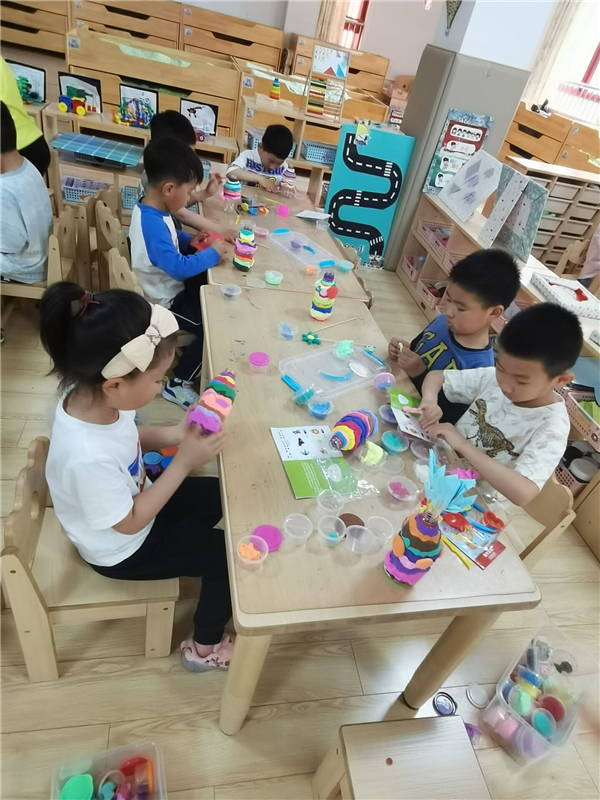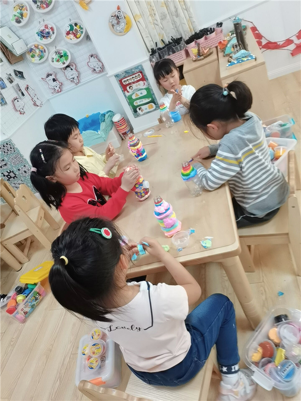 在活动中,首先孩子们准备了可以装饰的塑料瓶,让孩子们用超轻粘土进行装饰,装饰完用折纸或者粘土做花。孩子们表现出浓厚的兴趣,争先恐后地说“我要送给我妈妈各种颜色的郁金香。”“我要用我妈妈最喜欢的颜色。”“我要把这个礼物藏起来,明天再送。”……孩子们一边讨论,一边用粘土展现自己的创意。