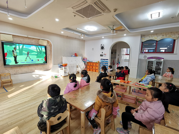 “健康、快乐、阳光!”不仅是足球游戏的特色,也是大五班小朋友在足球活动时的样子。观看了“足球特色平台课程”后,小朋友了解道:“老师,我们在踢球前要动一动、扭一扭身体,做热身活动。”是的,我们在户外踢球时要先把手脚活动开,才能避免手脚受伤,让我们跟着音乐一起“动”起来吧!