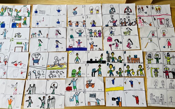 活动在孩子们的畅聊中拉开了序幕,“一分钟我可以跳做个跳绳。”“一分钟我可以用纸折一个手表。”等等。随后,老师让小朋友们将一分钟可以做的事用画笔记录下来,思维的火花,插上想象的翅膀,各种各样有趣的事情层出不穷,原来一分钟可以做这么多的事。