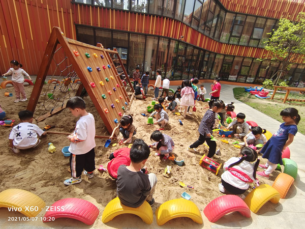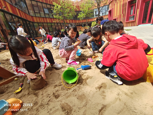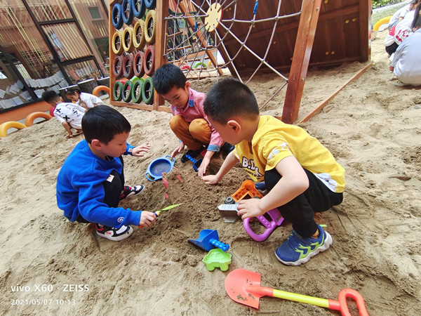 在玩沙活动中,孩子情绪愉悦,始终保持着良好的心态。创造性思维得到了启迪和发展。