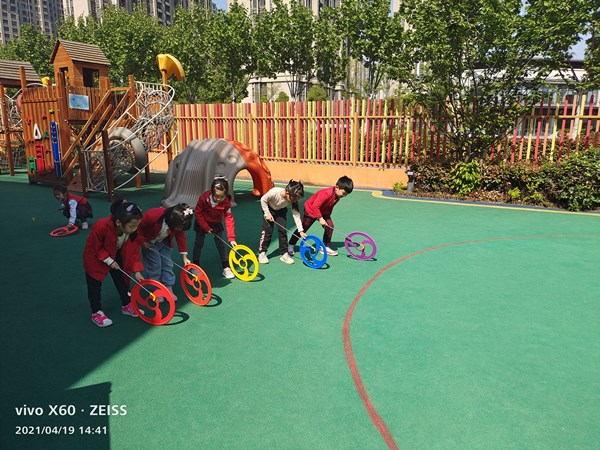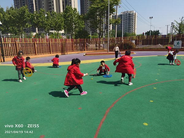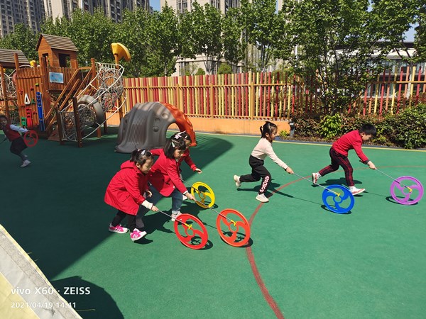 《3-6岁儿童学习与发展指南》指出发育良好的身体、愉快的情绪、强健的体质、协调的动作、良好的生活习惯和基本生活能力是幼儿身心健康的重要标志,也是实现幼儿全面和谐发展的基础。 一年之计在于春,春季是孩子们锻炼的好时机,2021年4月19日,大西幼教育集团森林城分园大一班开展了欢乐的户外体育游戏“快乐滚铁环”,孩子们像欢快的马儿一样奔向自己喜欢的游戏场,快活的不得了。