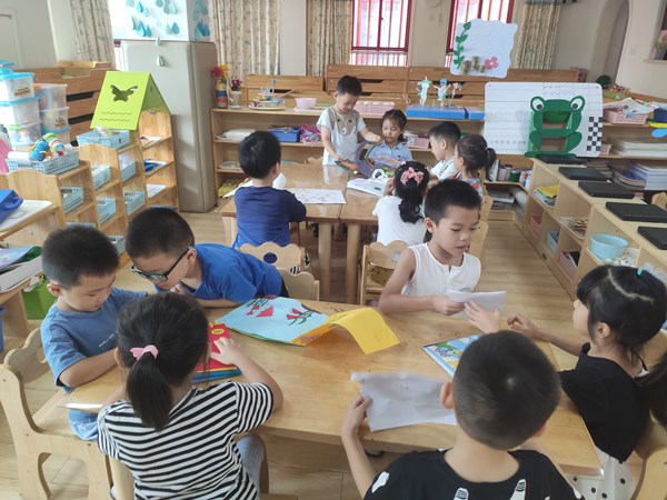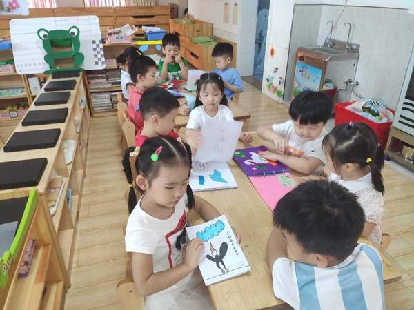 自制绘本展童心,百花齐放争斗艳。“我和妈妈一起制作的绘本故事是《爱爬树的小奶牛》,我们用折纸制作了奶牛……”,“我的是《小蝌蚪找妈妈》,这是说了小蝌蚪找妈妈的故事,有一只小蝌蚪……”等。如火如荼的分享会将热情洒满教室,每个小朋友都踊跃发言,和大家一起分享自己和家人制作的绘本,点燃阅读。