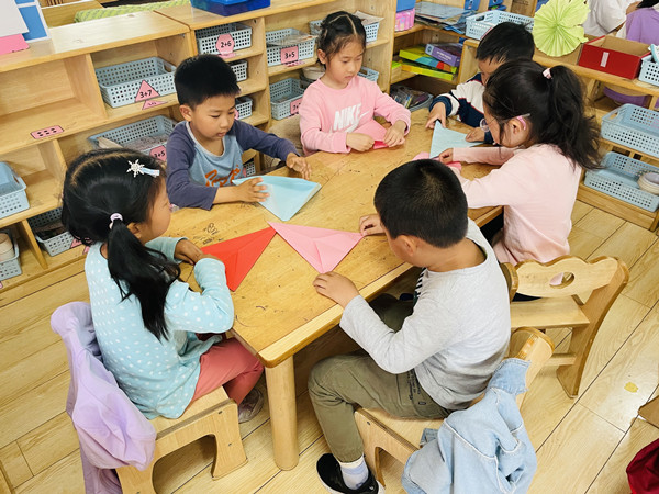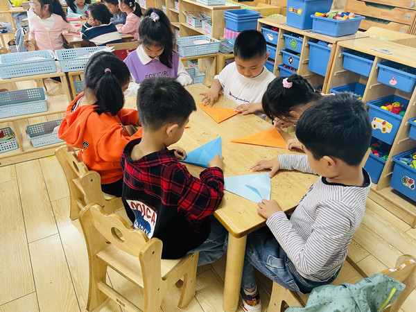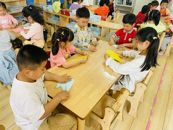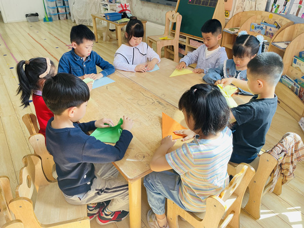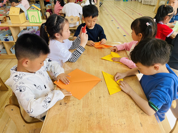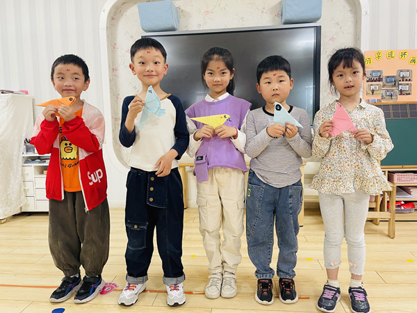 折纸是一项民间传统艺术,是深受幼儿喜爱的一种工艺。为了增强幼儿对折纸的兴趣,更好的促进幼儿小肌肉群的发展,让一张张纸张在幼儿稚嫩的手指里变得鲜活。2022年4月24日,大西幼教育集团森林城分园大八班开展了折纸“小鸟”活动。