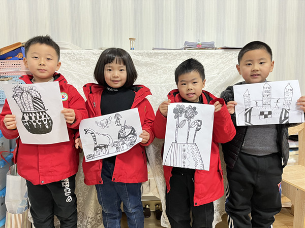 从中班到大班,孩子们已经掌握了一定的线描画基础,绘画的积极性不断增强,从开始的不知怎样画变得敢想、敢画、乐于画。瞧!横线、竖线、交叉线、锯齿线、圆圈线等此刻成为了孩子们表达万千世界的一种独特方式。他们专心地作画,认真地创作,在他们的笔下,一幅幅充满童趣的线条画悄然绽放。