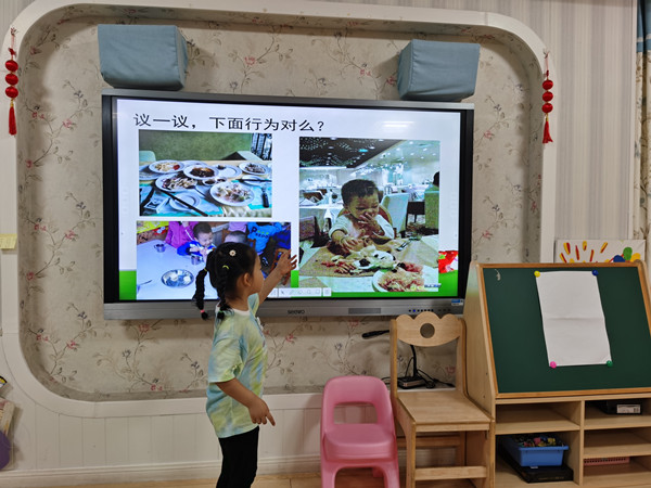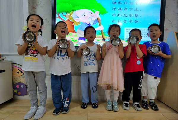 活动中,孩子们先通过欣赏图片和看视频等方式了解各种粮食以及粮食的营养价值。然后通过观看一些浪费粮食的图片引导孩子们说一说:“这样浪费的行为是否正确?正确的方法应该怎样做?”。接着,通过学习手指游戏《悯农》的方式,帮助幼儿进一步感受每一粒粮食都是农民伯伯辛勤劳动的结晶,懂得“一粥一饭当思来之不易”的道理。