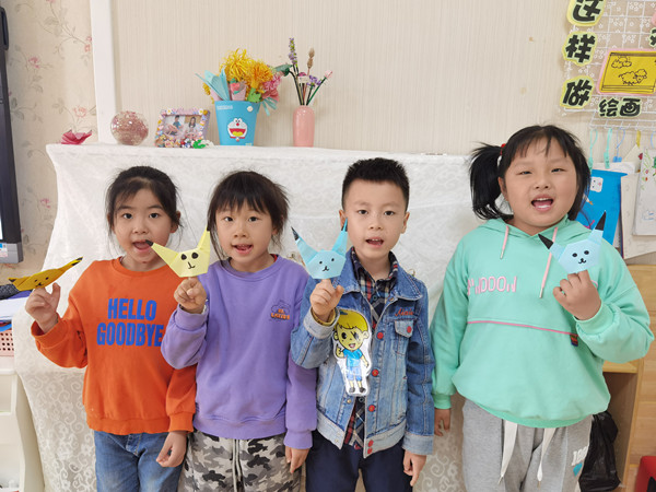 活动开始,教师边示范边详细讲解了折纸的步骤,并鼓励幼儿自己试一试。一步、两步、三步、四步……哇哦,我的皮卡丘完成啦!最后给它画上各种有趣的表情,一只可爱且萌萌哒的“皮卡丘手指套”在手指上舞动起来啦!