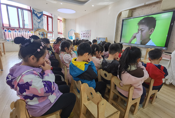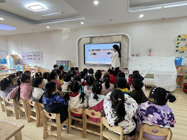 活动伊始,教师通过PPT形象地让幼儿了解了眼睛的构造以及如何爱护眼睛等,并教育幼儿要从小养成保护视力,爱护眼睛的好习惯。接着,根据幼儿的年龄特点,带领幼儿学习“幼儿眼保健操”。对于做法不准确的幼儿,进行纠正和指导,让每个幼儿都能准确掌握幼儿眼保健操的做法,从而保护好自己的眼睛。
