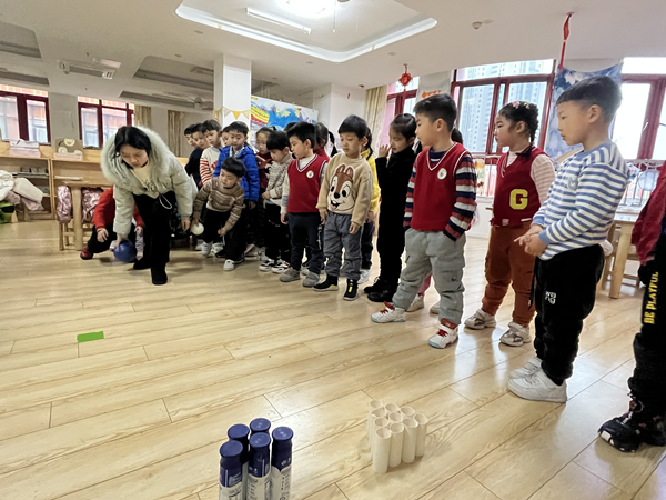 游戏是幼儿的天性,也是幼儿最基本的活动。2022年2月18日上午,合肥市大西门幼儿园教育集团森林城分园大二班开展了室内游戏“活力保龄球”。