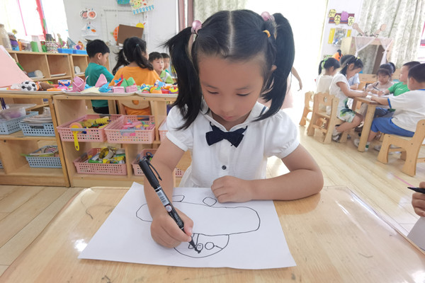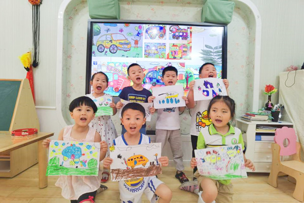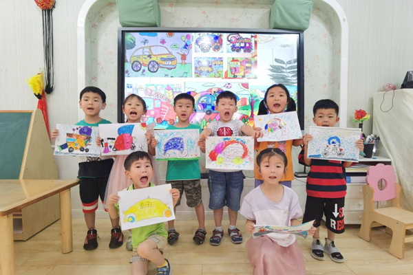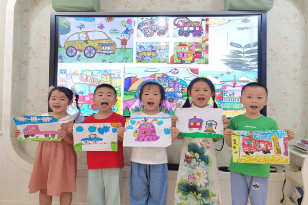 活动开始,各种各样的小汽车图片映入小朋友们的眼帘,紧接着老师提出一个问题:“说一说小汽车的基本特征有哪些,并于同伴分享。”问题一抛出,小朋友们就七嘴八舌地分享着自己观察“汽车”的基本特征,纷纷表示想要把看到的“小汽车”画出来。随着小朋友的兴趣逐渐浓厚,大家纷纷拿起手中的画笔。瞧,小朋友们的作品幅幅造型稚气可爱、色彩艳丽斑斓。面对着各种各样的车,有的小朋友说:“我设计的是垃圾车,它可以回收垃圾,保护环境,非常厉害。”有的小朋友说:“我设计的是挖土机,我觉得它可以挖好多土,非常酷。”还有的小朋友说:“我设计的是房车,可以到处去旅游。”