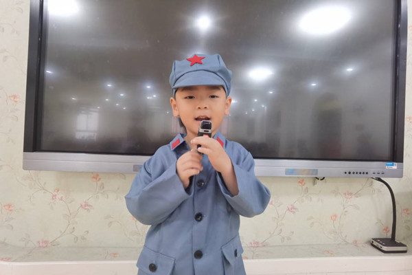 活动中孩子们身着红装、跃跃欲试,想要一展风采。只听见黄允和小朋友一脸认真地讲述“红小丫打着竹板:同志们,加劲走,赶快穿过大风口……”。为了展现精彩的故事情节,孩子们边讲边演,那有模有样的神态可爱极了!红小丫王新兰的故事久久回荡在教室中……
