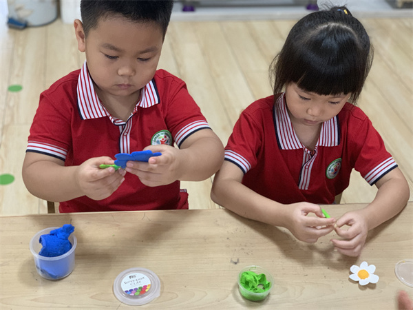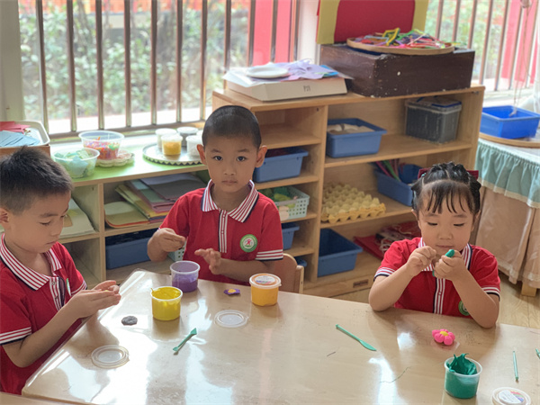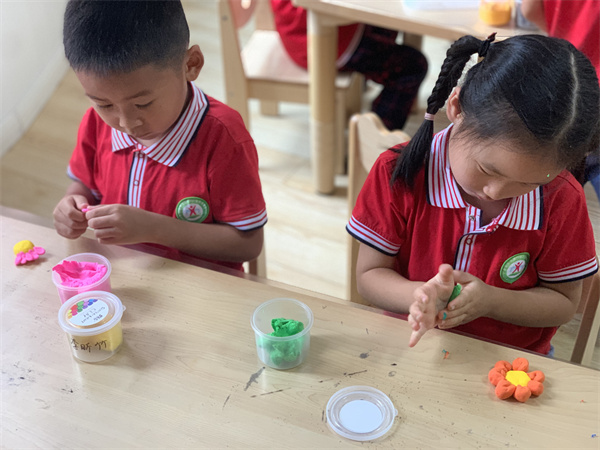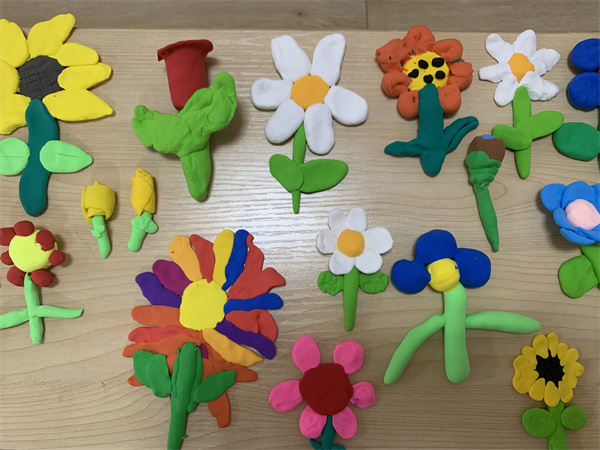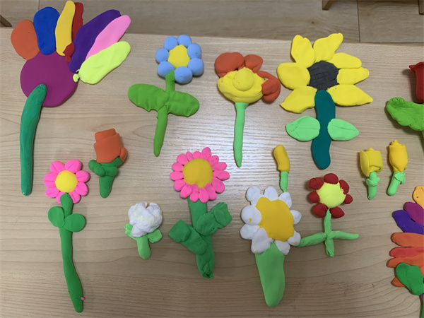 孩子们自由发挥想象,在五颜六色的粘土中运用揉、搓、捏、切等动作进行创作,一个个可爱的作品从孩子们灵巧的手中绽放。整个活动充满了欢乐、合作和畅想,玩地不亦乐乎,看着自己的创意和成果,孩子们体验到了收获的快乐。