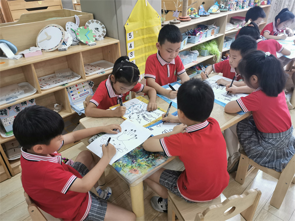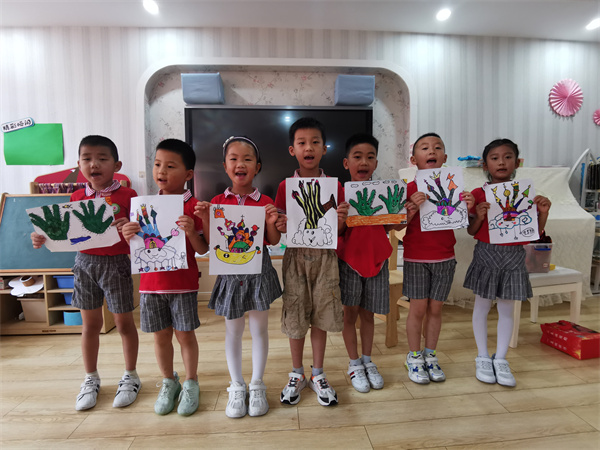 创意手形画激发了大班幼儿发现美、创造美的兴趣,通过联想和想象,大班幼儿以手的形状为基础,添加各种丰富的元素,创造出一幅幅生动而又形象的作品。