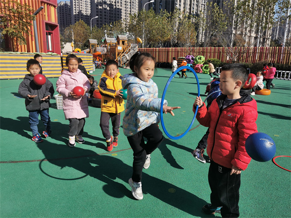 随着冬天脚步的临近,天气变凉,为了增强幼儿体质,让疾病远离幼儿,2021年12月3日上午合肥市大西门幼儿园教育集团森林城分园大七班的老师积极开展丰富多彩的户外体育锻炼活动。