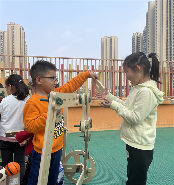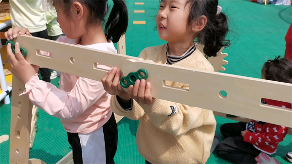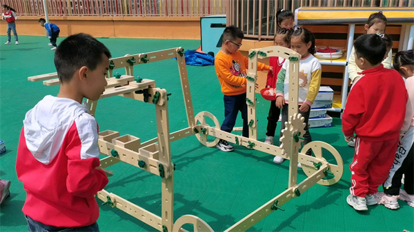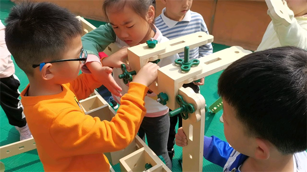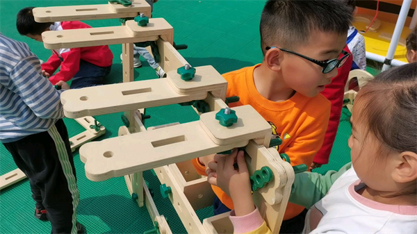螺母积木可以激发幼儿想象力与创造力,满足幼儿更复杂的游戏需要,促进幼儿之间的合作与沟通,帮助幼儿在建构过程中不断积累对物理概念、空间关系等感性经验,还可以促进幼儿手眼协调、大小肌肉发展,为幼儿的健康注入更多活力。