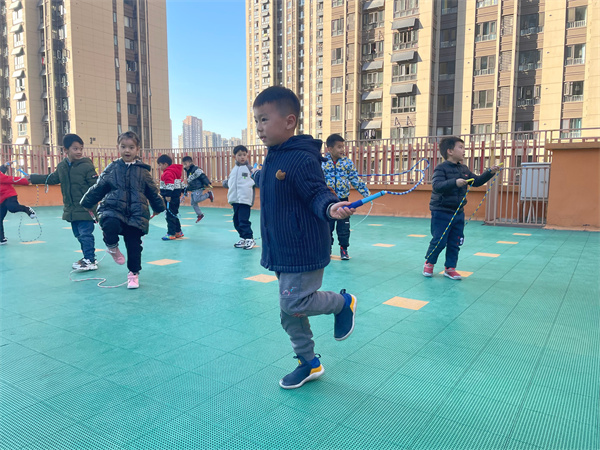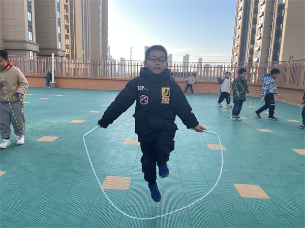 大四班的跳绳活动从九月份就开始不间断,有计划的组织幼儿进行。经过三个月的认真练习,孩子们的跳绳水平有了极大的进步,从刚开始的双脚跳逐渐变成了单脚跳、换脚跳等。还有的孩子在尝试接力跳大绳,自信洋溢在每个孩子的脸上。