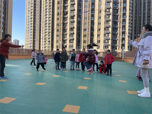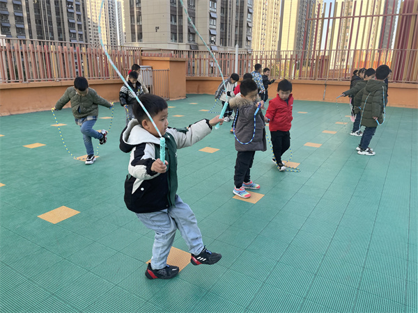 在气温逐渐降低的冬季,为了帮助幼儿更好的发展自身的力量与耐力,培养幼儿对体育活动的兴趣。2021年12月2日下午,大西门幼儿园教育集团森林城分园开展了“花样跳绳”活动。