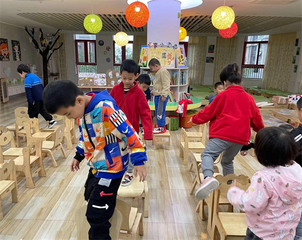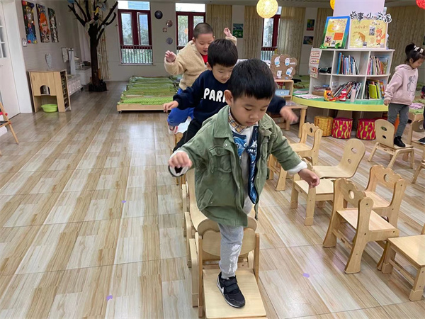 为了帮助幼儿更好的发展自身的力量与耐力,依据《3-6岁儿童学习与发展指南》中5-6岁幼儿能手脚并用的方式安全地攀登架、网等。2021年10月20日下午,大西门幼儿园教育集团森林城分园开展了“翻山越岭——多变的椅子”活动。