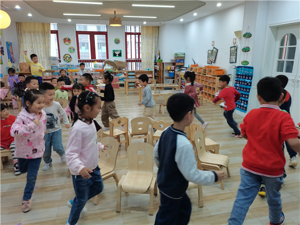 《指南》中提出幼儿的户外活动时间不少于2小时,户外活动不仅是幼儿日常活动中一个非常重要的环节,同时也是幼儿运动的基本形式。2021年10月9日上午,合肥市大西门幼儿园教育集团森林城分园大四班的小朋友在班级老师的带领下玩起了“抢椅子”的游戏。