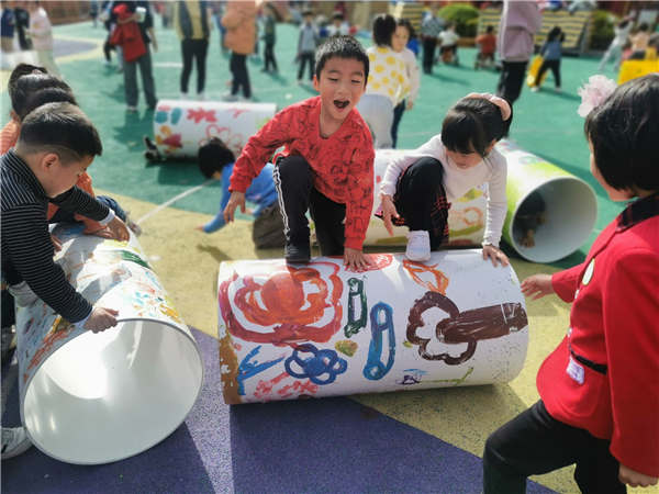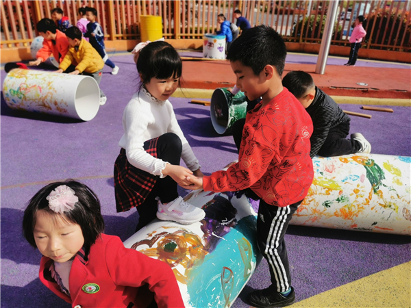 滚筒是一种结构简单、玩法多样、操作性强的低结构材料,能够满足孩子对户外自主游戏的一些需求。2022年3月31日下午,大西幼教育集团森林城分园大五班开展了户外自主游戏“好玩的滚筒”活动,通过对滚筒的探索、合作来感受游戏带来的乐趣。