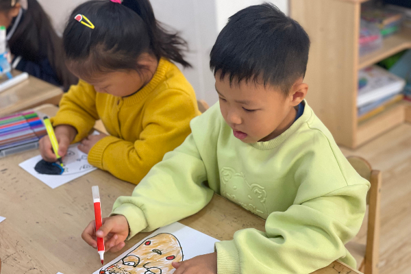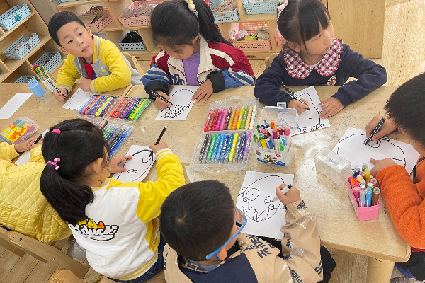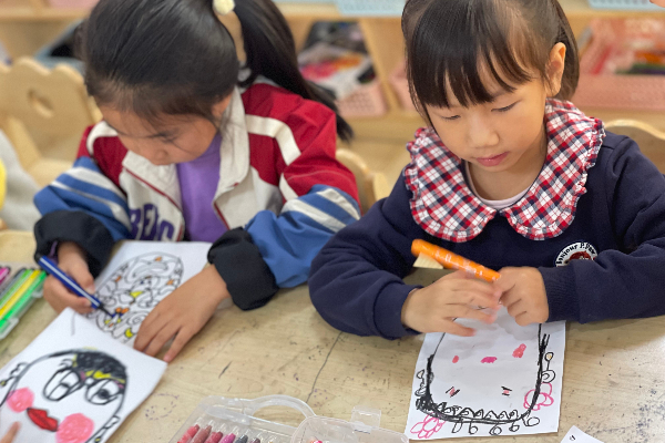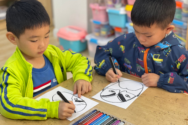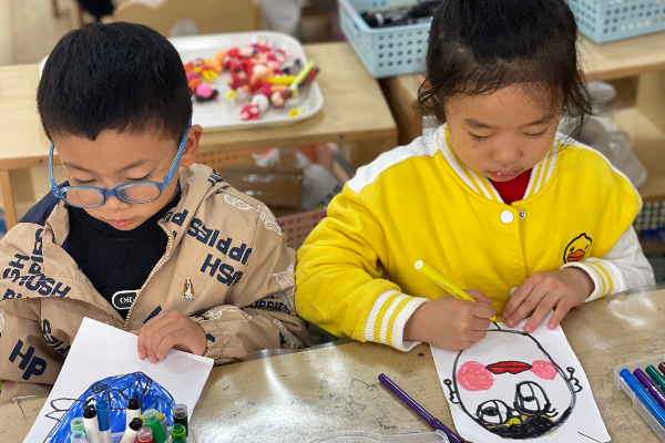 欣赏和了解了不同脸谱造型代表的人物性格,小朋友们开始设计自己喜欢的脸谱啦!
