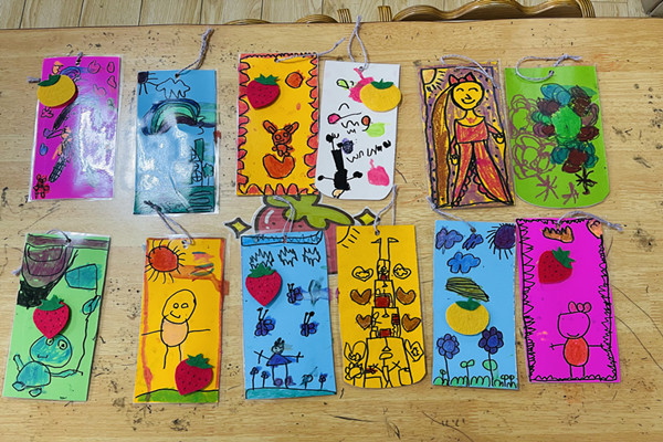 书签不仅可以对阅读的进度进行记录、做标记,还可以帮助我们留下读书的足迹、阅读的思绪。小小的书签承载着他们对绘本的热爱,提高了孩子们的动手能力和阅读兴趣。