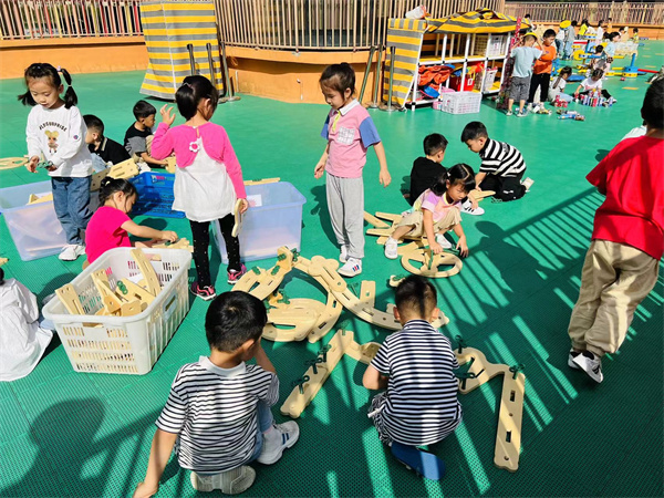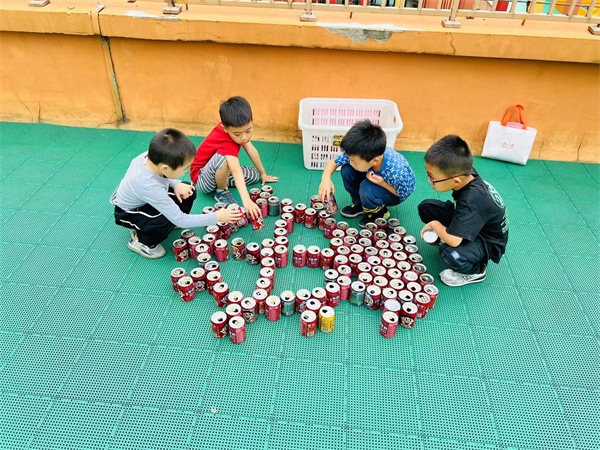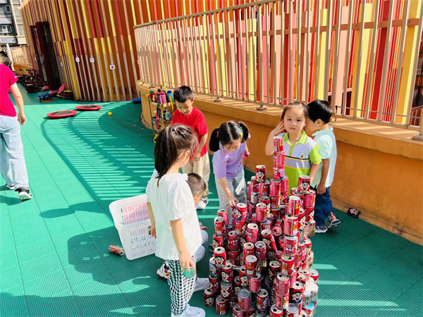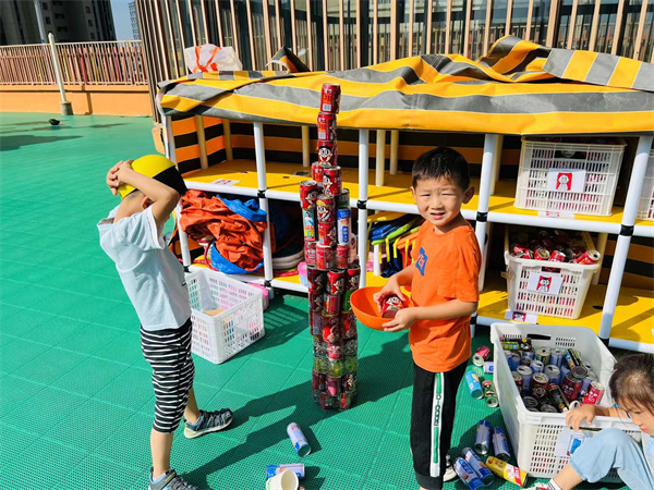 牛奶罐搭建是小朋友们最爱的户外活动之一,作为创造性游戏的一种,孩子通过动手操作,充分发挥想象力和创造力,把自身对生活的印象反映在建构的物体中,从而实现个人创造的可能,体验创造的快乐。