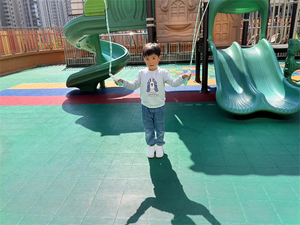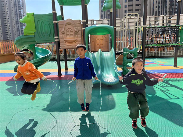 跳绳能够促进幼儿的骨骼良好发育,提高幼儿手、脚、腕、肩等部位协调能力的发展,还能塑造孩子的意志力。大班的小朋友即将步入小学,而跳绳正是小学必不可少的本领。为了促进幼儿运动技能的提高,调动幼儿学习跳绳的积极性和主动性,合肥市大西门幼儿园教育集团森林城分园大二班每天组织幼儿在晨间活动、户外活动时积极开展"跳绳"运动。