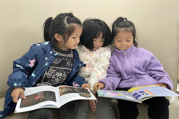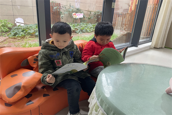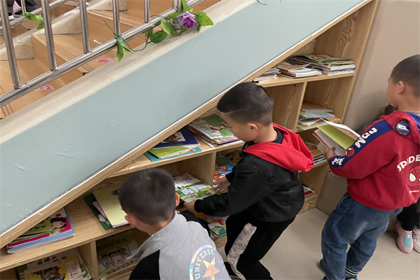 看!幼儿园的阅览室为孩子们营造了书香飘逸的浓郁氛围,推荐了优秀的绘本读物。