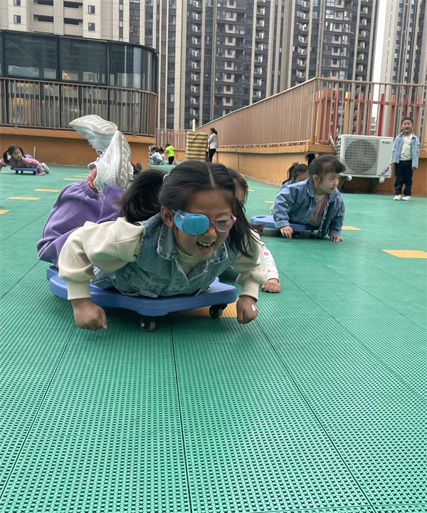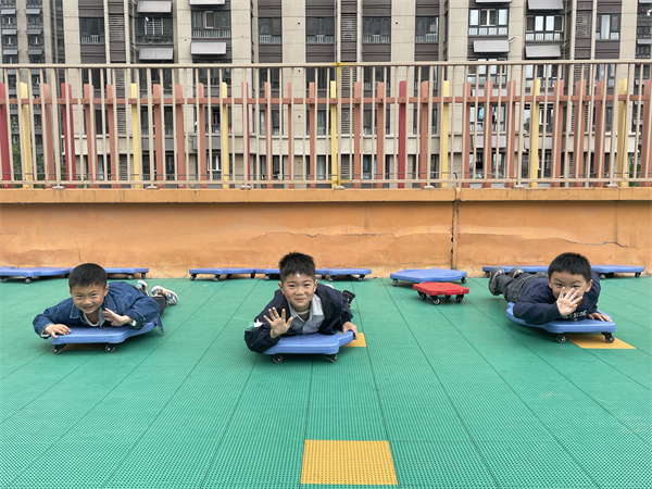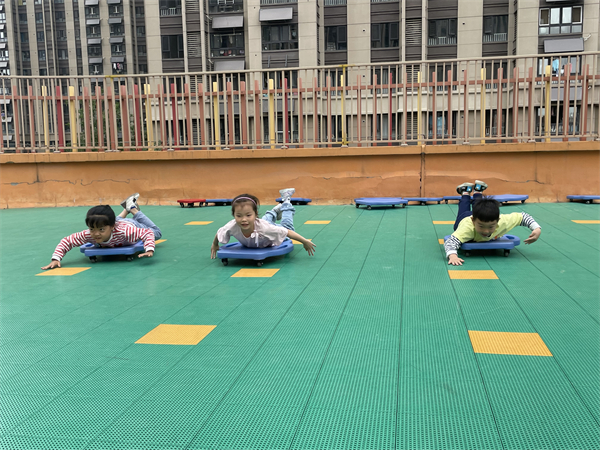 运动是快乐的,运动是健康的,《幼儿园教育指导纲要》健康领域中提出:“培养幼儿对体育活动的兴趣是幼儿园体育的重要目标,要根据幼儿的特点组织生动有趣、形式多样的体育活动,吸引幼儿主动参与。”2023年5月10日,合肥市大西门幼儿园教育集团森林城分园大六班利用体育器械——滑板车,组织开展了户外游戏活动,通过幼儿的不断探索,将滑板车玩出了新高度,激发幼儿的活动兴趣,促进幼儿身体的综合发展,快让我们一起来看一看吧!