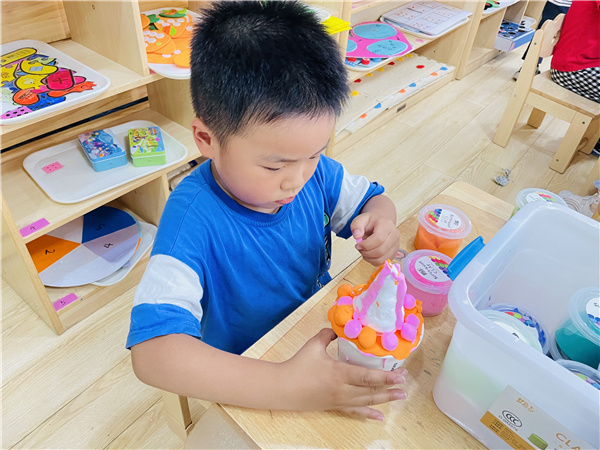 活动开始前,教师准备好裁好的纸样及成品展示给幼儿欣赏,以送礼物的方式激发幼儿兴趣。接着向小朋友们出示了各种各样冰淇淋制作图样,大家可以根据自己喜好,任意选择味道、形状等来制作冰淇淋。小朋友们制作地可认真啦,发挥自己的想象力制作美味的冰淇淋,教师鼓励幼儿大胆尝试,支持幼儿根据需要选择多种材料制作。有些幼儿在制作时会遇到一些自己不能解决的问题,老师多鼓励幼儿在制作过程中能相互合作,取长补短。