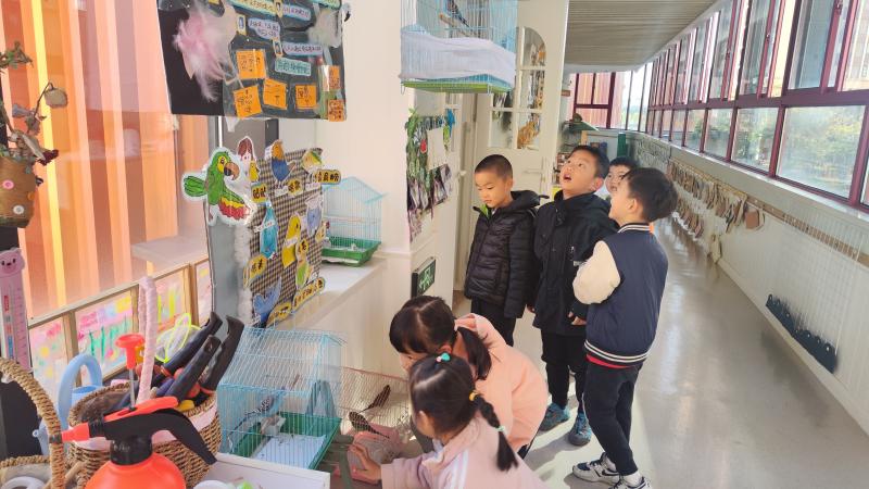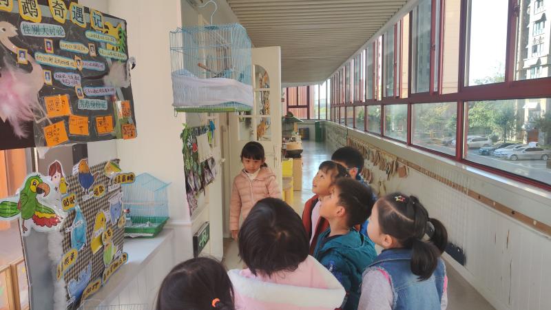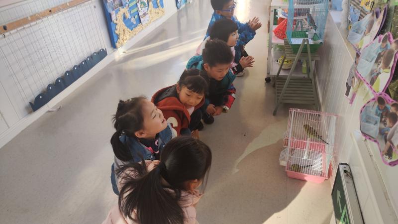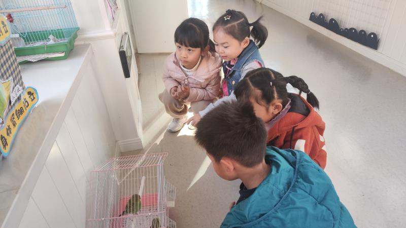 学期初,大三班的张雨菡、吕秉焜、程梓坤等几位小朋友给班级的自然角带来新朋友——虎皮鹦鹉。孩子们对新朋友感到非常好奇,班级的自然角也变得更加热闹了。在我们的身边总会围绕着孩子们讨论鹦鹉的对话。