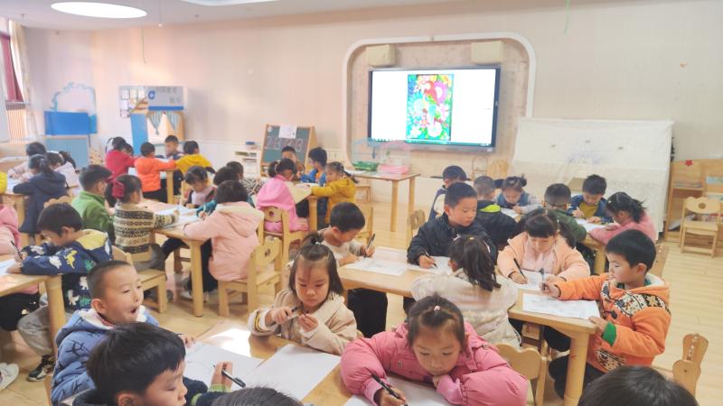 展示作品时,可以看到有的小朋友用了线描进行装饰,也有小朋友用水彩笔或油画棒进行色彩的装饰,每一幅作品都充满艺术。