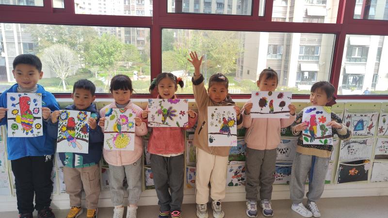 在此次绘画中,主要以写生的形式进行绘画,孩子们大胆画出鹦鹉的各种状态,在绘画中都非常有想法:
