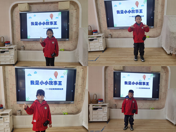 故事大赛正式开始啦!孩子们表现地落落大方。他们用生动的语言和形象的动作,把大家带入了一个又一个美妙的童话世界,赢得了小观众们的阵阵掌声。瞧!他们用丰富的表情、生动的语言和优美的肢体动作,绘声绘色地讲述着《小猫钓鱼》、《三只小猪》、《小兔子盖房子》、《牙齿大街的新鲜事》、《小红鱼和小黑鱼》、《花仙子》等多个故事,小选手们通过精彩地讲述,将故事情节、角色个性渲染地淋漓尽致。