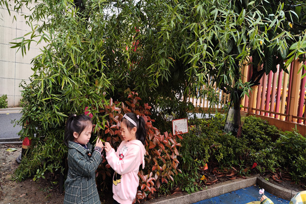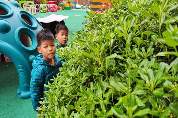 春天到底是什么样子的?春天到底在哪里?教师和幼儿来到户外,树尖上的小嫩芽、竞相开放的花朵、绿意生辉的枝条……无不让幼儿沉醉其中。幼儿在找一找、看一看、闻一闻中探索着春天的秘密,大家你一言我一语表达着对春天的热爱。