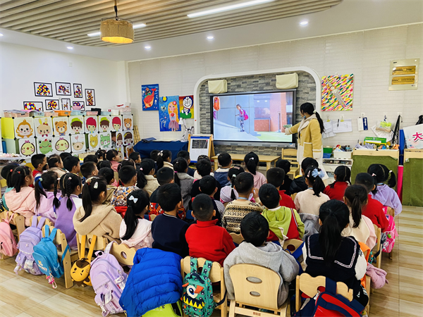 小学在孩子们的眼中充满了神秘感,许许多多的问题在孩子们的脑袋里浮现,有担忧、有好奇、也有向往……那么小学生活到底是什么样子的呢?活动开始,老师带着孩子们一起观看了小学生活的视频,孩子们聚精会神地听着视频中哥哥、姐姐们琅琅的读书声和老师生动的讲解;看着哥哥、姐姐们认真上课、积极回答老师问题的样子;看着有趣且丰富的校园活动,孩子们既羡慕又向往。那么小学和幼儿园生活有哪些不同呢?孩子们七嘴八舌地展开了讨论:“小学的教室里一位小朋友一张桌子一把椅子!”“小学有很多节课,每节课都有不同的老师,还有课间休息,还要做眼保健操。”“幼儿园有玩具,小学没有。”“小学教室里有大大的黑板,还有大大的操场。”每位小朋友观察的都很仔细,原来小学和幼儿园有这么多的不一样,通过视频孩子们了解了小学生活,想要上小学的愿望也更加强烈了。
