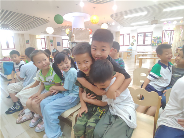 “老师我记得,那会我还哭喊着找妈妈、不想上幼儿园。”“我小时候好可爱呀,怎么还有点胖胖的!”“我记得我小时候就不哭,我想妈妈都在心里想”……看着自己小时候的照片,孩子们七嘴八舌地回忆起来,原来小时候的自己有这么多可爱的事迹……那我们一起发生过什么事情呢?第一次参加升旗仪式、第一次参加跳蚤市场活动、第一次完成班级任务、第一次在集体面前分享自己的经验等等……我们一起经历了很多有意义、感动的事。最后,孩子们带着感动与不舍拥抱在一起——希望我们永远都是好朋友!