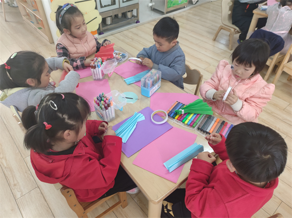 对于儿童来讲,手工可以锻炼孩子手指的灵活性,开发他们的动手能力和创新能力;在进行手工活动的过程中,孩子还可以养成按步骤、有顺序认真做事的良好习惯,也可以培养他们的观察力和注意力,2022年3月8日上午,合肥市大西门幼儿园教育集团森林城分园中五班的小朋友们正在专心致志地做手工呢!