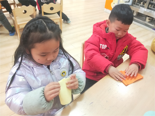 折纸是一项动手动脑的创作活动,可以锻炼幼儿双手的灵活性,又能开发幼儿的智力,活跃思维。为了发展幼儿的动手操作能力,培养幼儿对折纸的兴趣。2022年1月13日上午,合肥市大西门幼儿园教育集团森林城分园中五班开展了手工折纸活动——“柿子”。