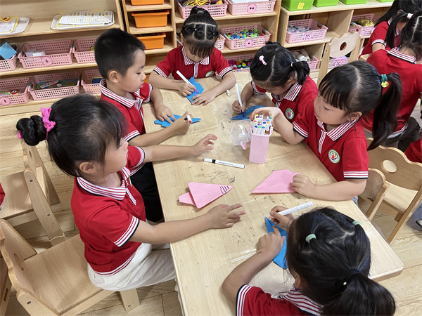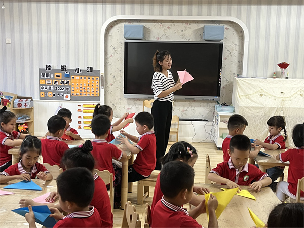 折纸是一种经济而又简单的动手游戏。幼儿通过手工折纸,可以建立几何物体的概念,让幼儿认识空间方位。2022年9月19日合肥市大西门幼儿园教育集团森林城分园大一班小朋友们开展了“多彩的树”手工折纸活动。
