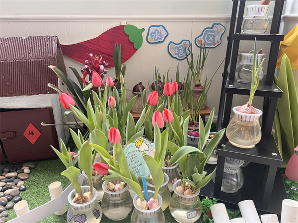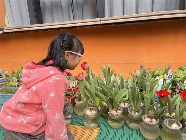 春天到了,花朵慢慢开放,植物努力生长。为了让孩子感受花的生长,孩子们在自然角水培了郁金香。2023年3月17日,大西幼教育集团森林城分园大一班小朋友们一起与植物角开放的郁金香来了一场春天里的约会。