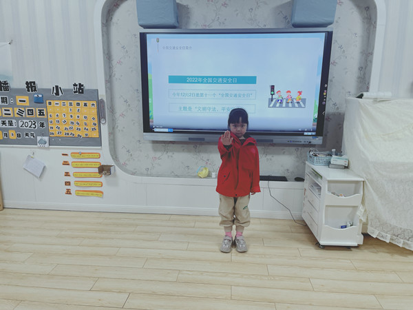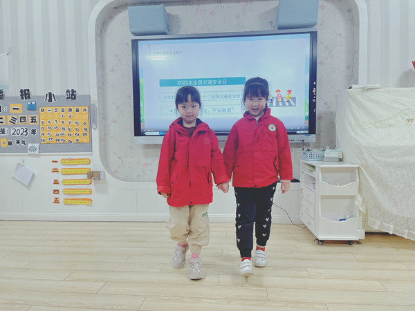 老师通过视频、图片等形式让小朋友们认识常用的道路交通标志、标线,掌握正确的过马路方式,做好“一盔一带”保护自身安全,遵守交通规则。活动中,老师示范如何正确戴头盔,邀请小朋友们扮演小交警、行人,在互动中孩子们认识和了解了交通规则、交通信号灯,交通标志、标线及其作用。