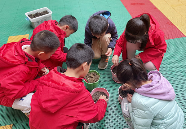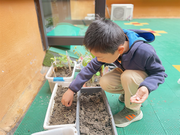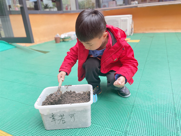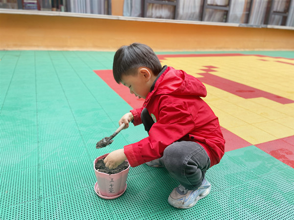 开学初,师生共同在植物角种植了一批漂亮的郁金香,在小朋友们精心播种和照顾之下,郁金香呈现欣欣向荣的长势。郁金香开了一段时间就凋谢了。为了让孩子们心里得到安慰,今日,孩子们在老师的带领和引导下,来到种植区,将之前空出来的花盆里重新种植了黄豆,孩子们满心期待黄豆宝宝健康成长,每天都去观察黄豆宝宝的生长情况。在小小的种植区里孩子们观察着、询问着、讨论着,尽情地享受着大自然的杰作。