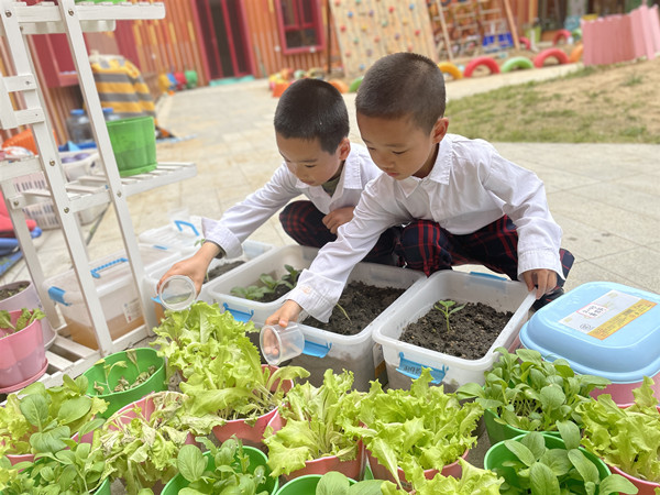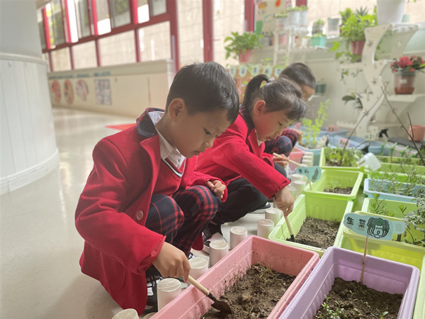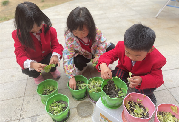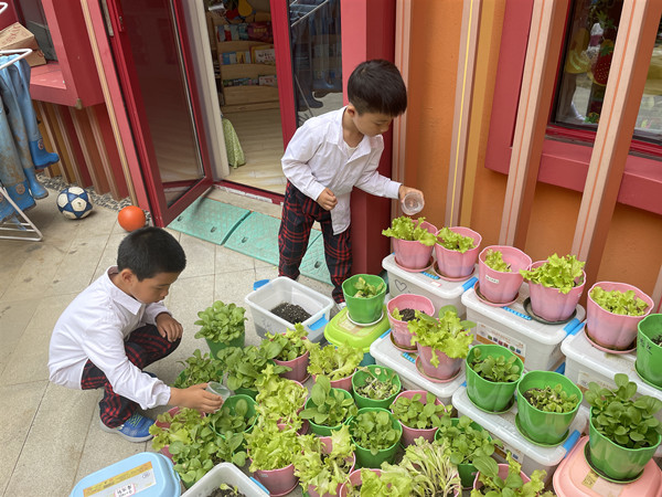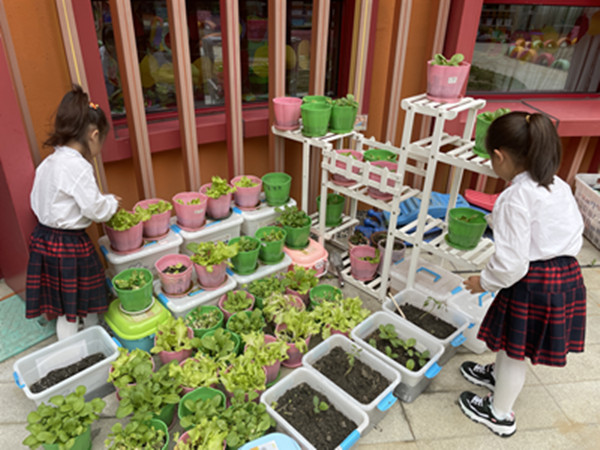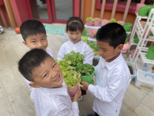 学前教育专家陈鹤琴先生说:“大自然是我们的知识宝库,大社会是我们的生活宝库,也是我们的活教材。”为此,大西门幼儿园教育集团森林城分园中一班在班级的植物角开辟了小菜园,为幼儿提供自主接触自然,认识自然,探索自然的机会。每个幼儿都可以从中享受真实体验,获得直接经验,从而萌发自主探索的兴趣,获得初步的科学经验和科学探索能力,体验发现和自主探究的快乐。