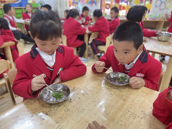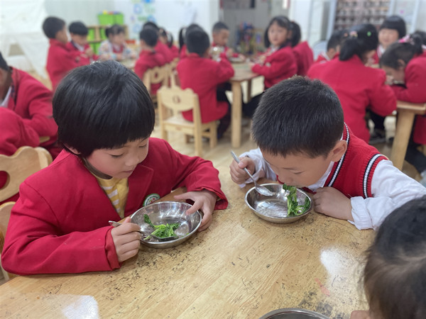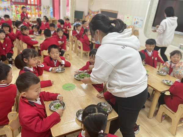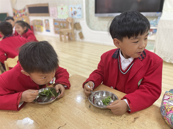 孩子们吃得可香了,陌陌说:“老师,我还想吃。”其他孩子也争先恐后的想再添呢。