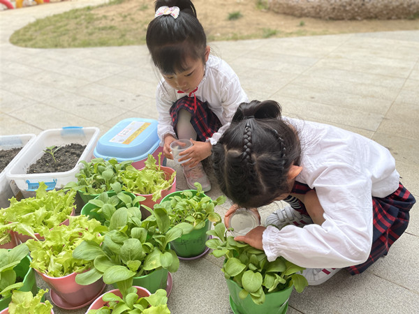 孩子们种植了鸡毛菜、生菜,他们时刻关注着蔬菜的成长,每天细心照顾它们,认真记录着它们的变化。