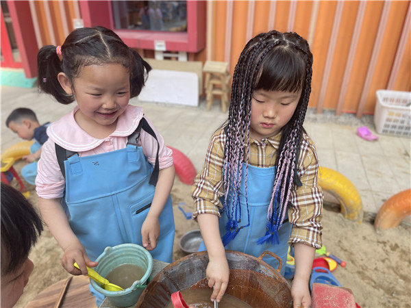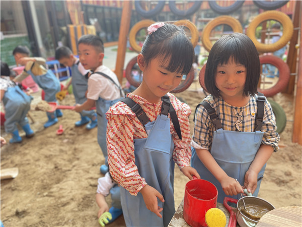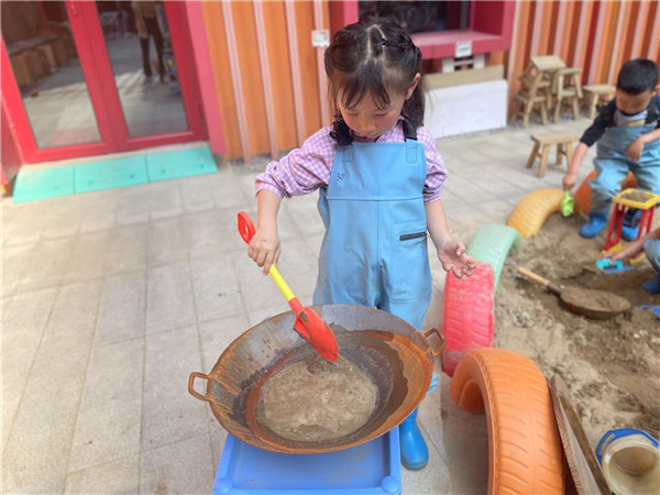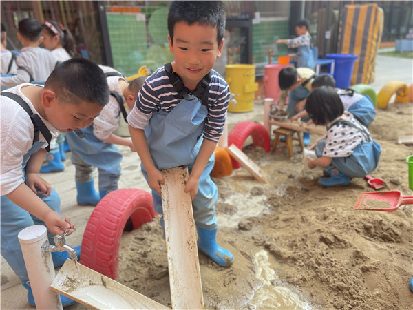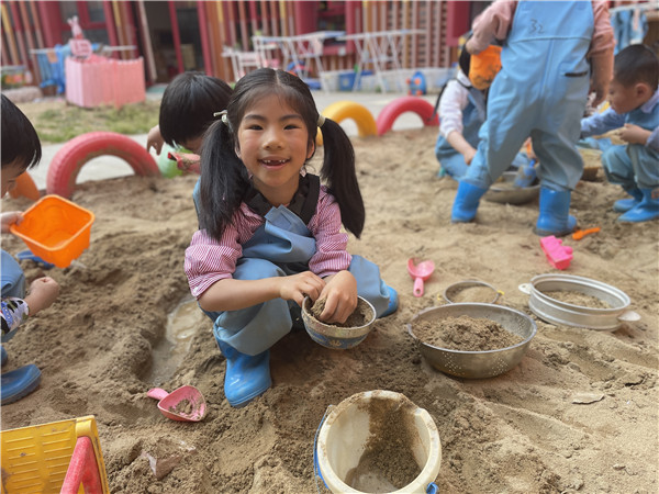玩沙给予了幼儿极大的满足感和成就感,他们可以用自己喜欢的方法,无拘无束、自由自在地玩沙,感受自我控制的乐趣,促进交往、合作,形成自觉遵守规则的良好氛围。